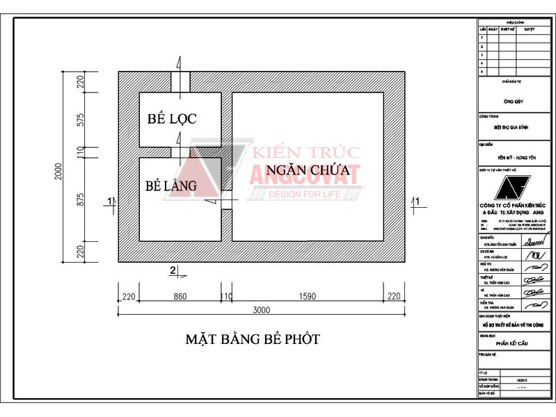 - Bể phốt có ba ngăn : chứa, lắng, lọc : trong đó ngăn chứa lớn nhất, có thế nằm ngay dưới khu vệ sinh tầng một . Từ ngăn chứa sang ngăn lắng để lỗ rộng ( 150x150mm) gần sát mặt bể .