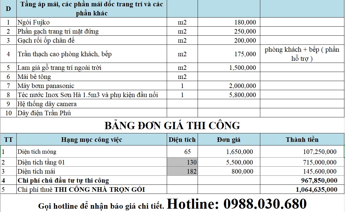 Để được chúng tôi báo giá chi tiết chi phí xây dựng ngôi nhà của gia đình bạn hãy gọi điện trực tiếp với Kiến trúc sư: 0988 030 680