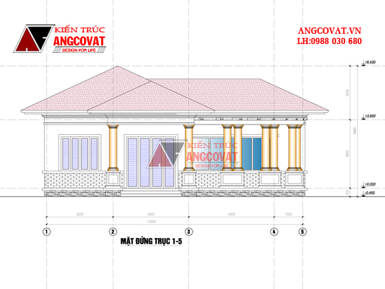 Thiết kế mặt đứng trục 1-5 bản vẽ nhà mặt tiền 14m