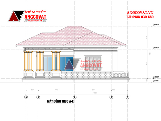 Thiết kế mặt đứng trục A-E mẫu nhà cấp 4 diện tích 130m2