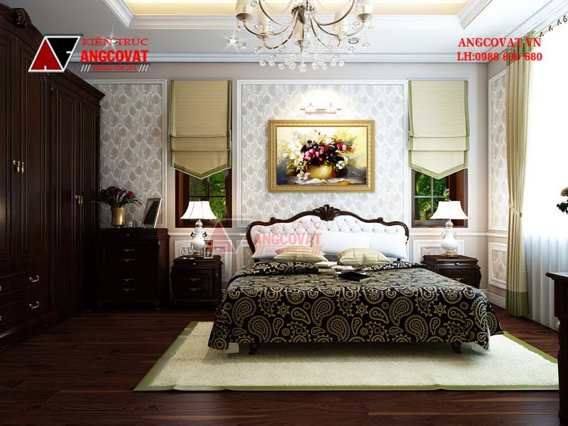 Thiết kế cách sắp xếp phòng ngủ 20m2 phong cách tân cổ điển hoàng gia