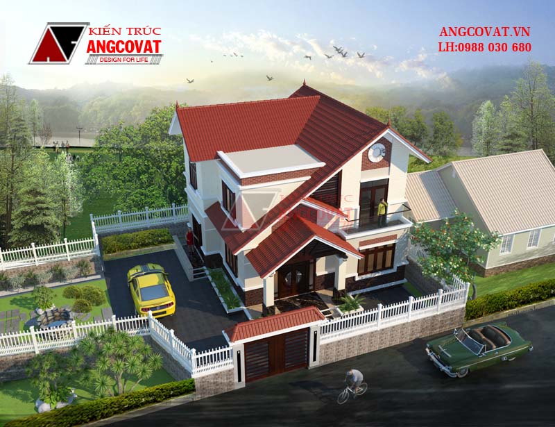 Ngôi nhà đẹp ở chính phối cảnh, cách thiết kế mặt bằng công năng cũng như vị trí xây dựng hài hòa ra sao với các không gian. Với các vị trí xây dựng biệt thự đẹp mắt hài hòa phù hợp không chỉ đảm bảo công năng mà còn đảm bảo phối cảnh tuyệt đẹp của mẫu thiết kế. Bởi phối cảnh chính là bộ mặt, điểm gây ấn tượng của bất kì công trình kiến trúc thiết kế biệt thự nào. Bạn đang thắc mắc tự hỏi không biết bộ hồ sơ thiết kế ngoại thất của kiểu dáng biệt thự 2 tầng này gồm những gì phải không? Bộ hồ sơ thiết kế của Angcovat gồm đầy đủ chi tiết các phần: kiến trúc, kết cấu, phần điện hay phần nước với giá cả gói gọn trong hồ sơ thiết kế ngoại thất