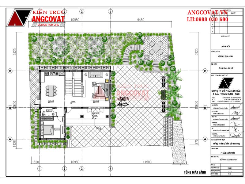 Hồ sơ đầy đủ mẫu nhà vuông 2 tầng nông thôn của Angcovat