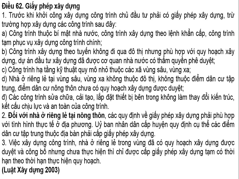 Đối với các mẫu nhà, các hộ gia đình luôn băn khoăn khoản giấy phép xây dựng đầu tư. Bởi đây chính là vấn đề nhiều hộ gia đình nghi ngại khi chính quyền "sờ gáy" hoặc lại mất một khoản "đầu tiên" nên các hộ gia đình khá phân vân khi thiết kế nhà ở quê. Tuy nhiên, các bạn đừng lo, bởi hiện nay theo Điều 62 bộ luật Xây Dựng quy định về Giấy phép xây dựng như sau: