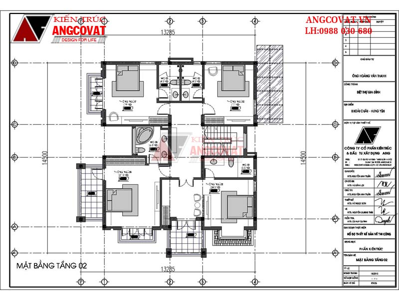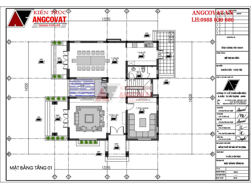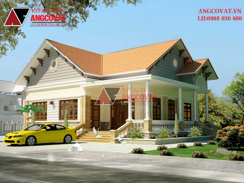 Chú Thanh- là một trong những khách hàng vô cùng đặc biệt của Kiến trúc Angcovat. Thiết kế nhà cho chú với kích thước 16x16m, các khối kiến trúc đăng đối, cân bằng. Ngôi nhà với kiến trúc 4 mặt tiền như một, sự bề thế, hoành tráng , đồ sộ là cảm giác đầu tiên mà bạn không thể bỏ qua khi nhìn ngắm ngôi nhà 2 tầng đẹp này. Hình dạng ngôi nhà vuông vắn, kích thước rộng cho phép kiến trúc sư thả hồn, phiêu cùng những chi tiết, đường nét trang trí kiến trúc đẹp mắt, cân đối.