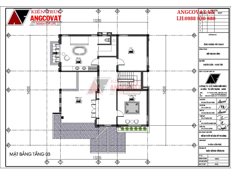3.2: Thiết kế nhà hình vuông 3 tầng BT220076