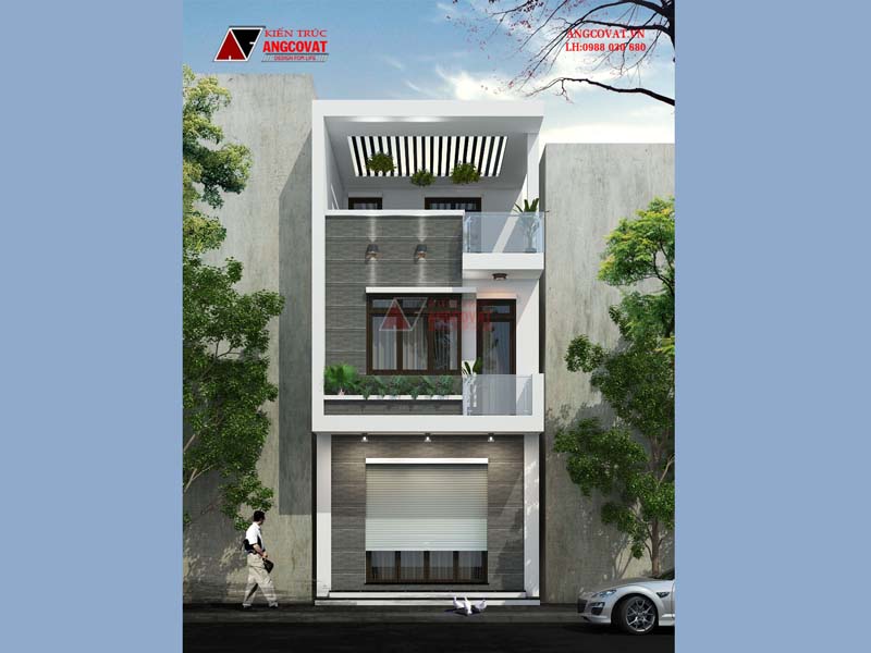 Mẫu nhà phố 3 tầng 5m mặt tiền trên đây được kiến trúc sư của chúng tôi thiết kế cho chủ đầu tư là anh Tình ở Hưng Yên với mặt tiền 5m, chiều sâu 18m trên kích thước ô đất 180m2. Hình ảnh phối cảnh của ngôi nhà 3 tầng mặt tiền 5m này đã cho thấy sự độc đáo trong kiến trúc từ màu sắc, hình khối cho tới cách bố trí cây xanh…