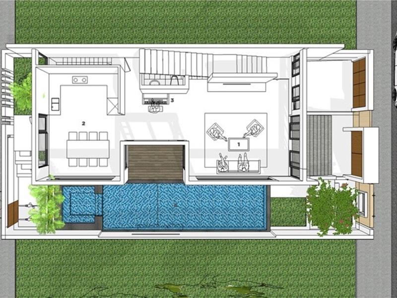 + Cần diện tích sân vườn rộng nếu xây bể bơi bên ngoài.