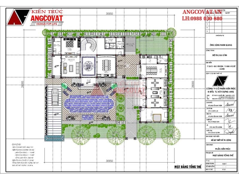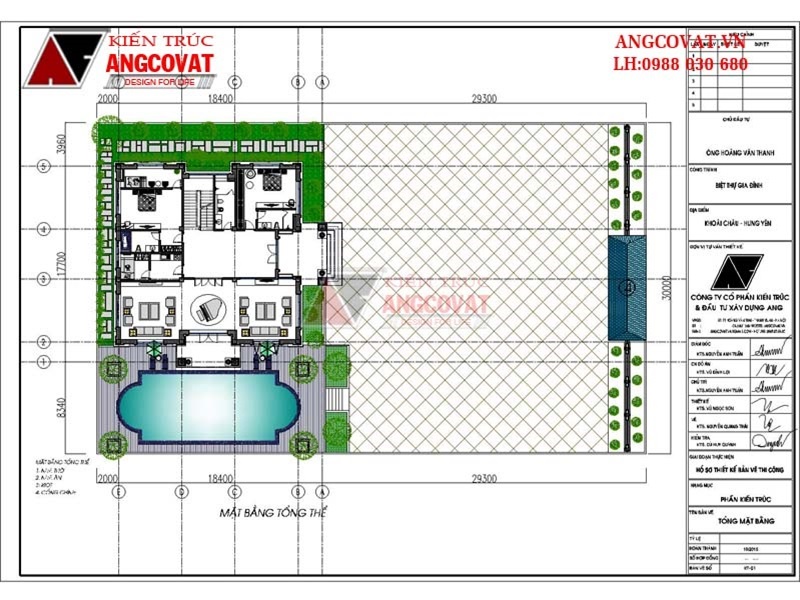 Mặt bằng tổng thể quy hoạch về mặt định hướng cho sân vườn công trình nhà biệt thự 2 tầng có hồ bơi kết hợp cả nhà thờ
