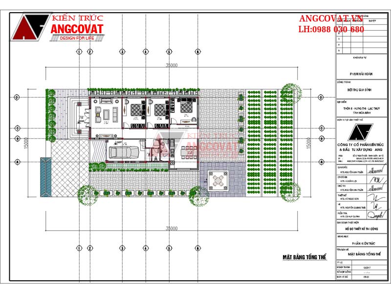 Rất nhiều khách hàng đã tìm đến Angcovat chúng tôi để nhờ tư vấn về việc thiết kế mặt bằng biệt thự 150m2, trong đó anh Hoàn ở Hòa Bình là một ví dụ điển hình. Mặt bằng biệt thự 150m2 của anh Hoàn được thiết kế bởi bàn tay vàng của kiến trúc sư Angcovat – kiến trúc sư Hiếu. Căn biệt thự được thiết kế trên ô đất có kích thước 15x35m, mặt tiền 10m tọa lạc tại huyện Lạc Thủy – tỉnh Hòa Bình. Các kiến trúc sư Angcovat đã nhận được yêu cầu tư vấn thiết kế mặt bằng biệt thự 150m2 từ anh Hoàn có hệ thống công năng chính bao gồm 1 phòng khách, 3 phòng ngủ, 1 bếp ăn, 1 phòng tắm và 1 gara ô tô. Chúng tôi đã có một buổi làm việc hiệu quả với anh Hoàn và bản thiết kế mặt bằng biệt thự 150m2 mang phong cách hiện đại đã ra đời từ đây.