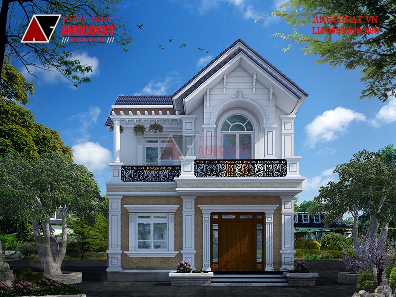 Hình ảnh phối cảnh của bản vẽ biệt thự 2 tầng mái thái 135m2 tân cổ điển