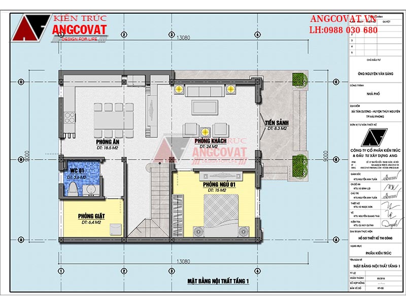 Chia sẻ mặt bằng công năng tầng 1 của bản vẽ biệt thự 2 tầng mái thái 110m2 đối xứng