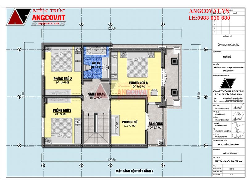 Chia sẻ mặt bằng công năng tầng 2 của bản vẽ biệt thự 2 tầng mái thái 110m2 đối xứng