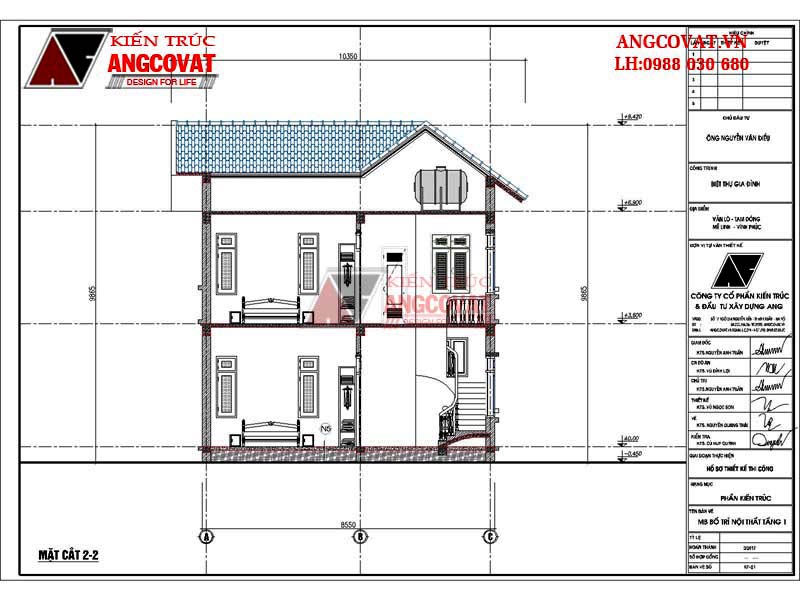 Mặt cắt 2 -2 chi tiết hình ảnh bản vẽ thiết kế nhà 2 tầng 8x10m