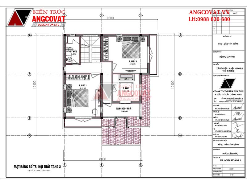 Tầng 2: phòng ngủ 2: 17m2, phòng ngủ 3: 17m2, sân chơi 22m2, wc2: 3.6m2