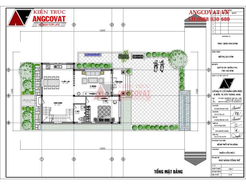 Bảng tính dự trù kinh phí thiết kế nhà mặt tiền 8m chiều sâu 15m của gia đình ông Chỉnh