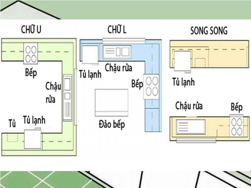 Các cách bố trí phòng bếp bao nhiêu m2 là hợp lý: dạng chữ L, chữ U, song song