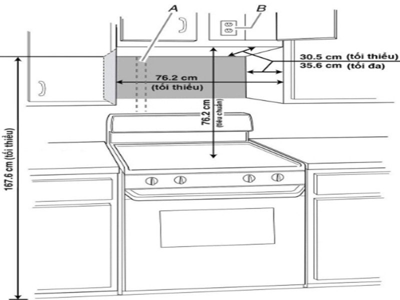 Chiều cao thiết bị trong phòng bếp bao nhiêu m2 là hợp lý