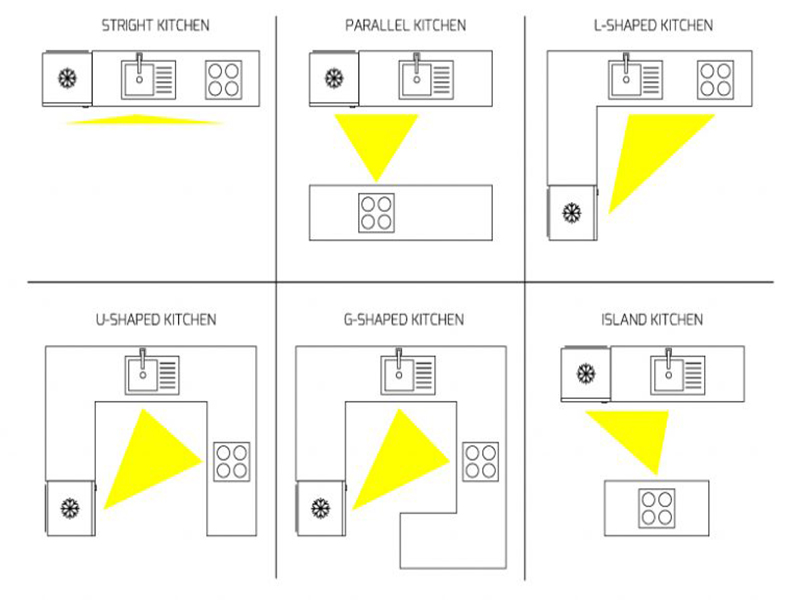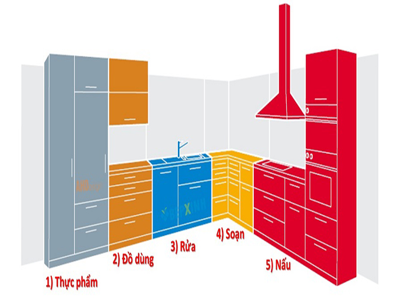 - Nên chú ý tới không gian làm việc: bồn rửa - bếp - tủ lạnh