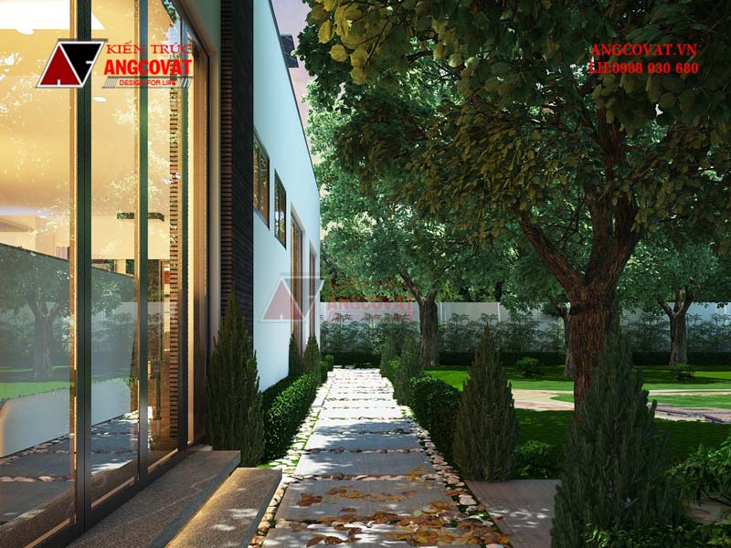 Sân trước mẫu biệt thự nhà vườn 300m2 quy hoạch rộng thênh thang