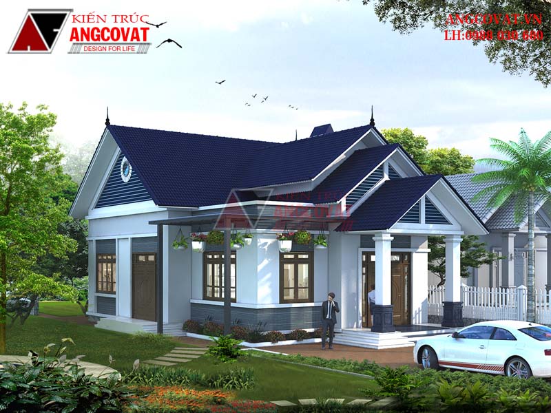 Tư vấn thiết kế nhà vườn 1 tầng 150m2 mái thái giá rẻ