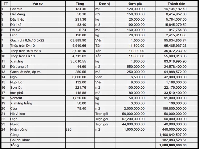* Trường hợp đổ bê tông mái bằng và mái dốc, chi phí là: 1.741.300.000.000