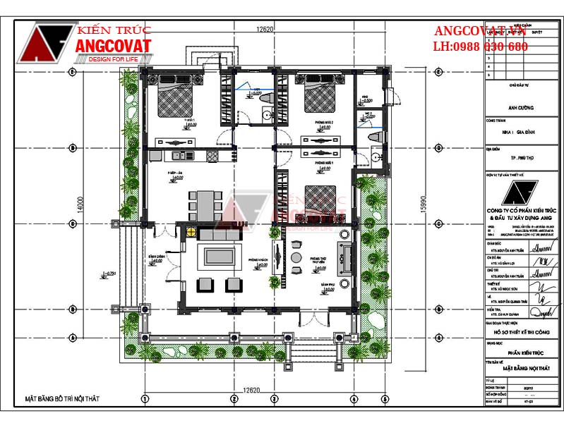 Nhận thấy sự hợp lý trong phương án thiết kế biệt thự nhà vườn 1 tầng diện tích 120m2 mặt tiền 13m, anh Cường và bác trai đã ngay lập tức đồng tình và tỏ ra rất tin tưởng vào kinh nghiệm của anh em kiến trúc sư chúng tôi. Đáp lại sự kỳ vọng của khách hàng, 2 ngày sau, ANG đã gửi đến gia đình anh Cường phương án thiết kế sơ bộ mẫu nhà cấp 4 có sân vườn và nhanh chóng hoàn thiện hồ sơ thi công, thiết kế chính.