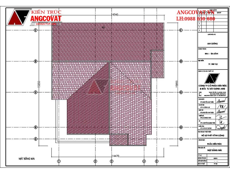 Bản vẽ thiết kế mặt bằng mái mẫu nhà mái dốc 1 tầng mặt tiền 13m có 3 phòng ngủ ở Phú Thọ