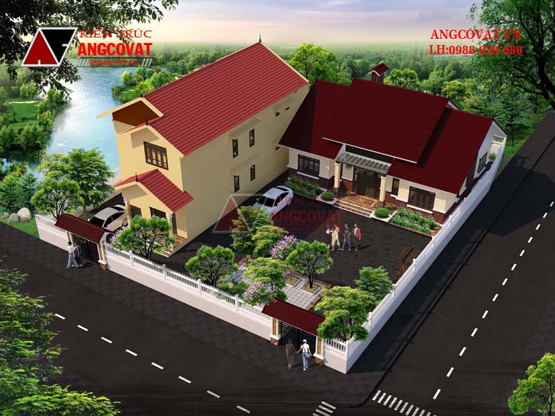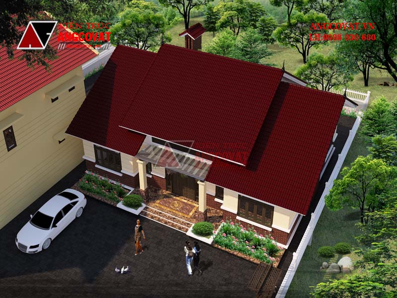 Như đã giới thiệu ở trên, ngôi nhà là sự kết hợp giữa hiện đại và truyền thống bởi vậy nếu thưởng thức bản phối màu dưới đây, chắc hẳn bạn sẽ thấy dấu ấn của các ngôi nhà cổ xưa trong đó với kiến trúc nhà 3 gian.