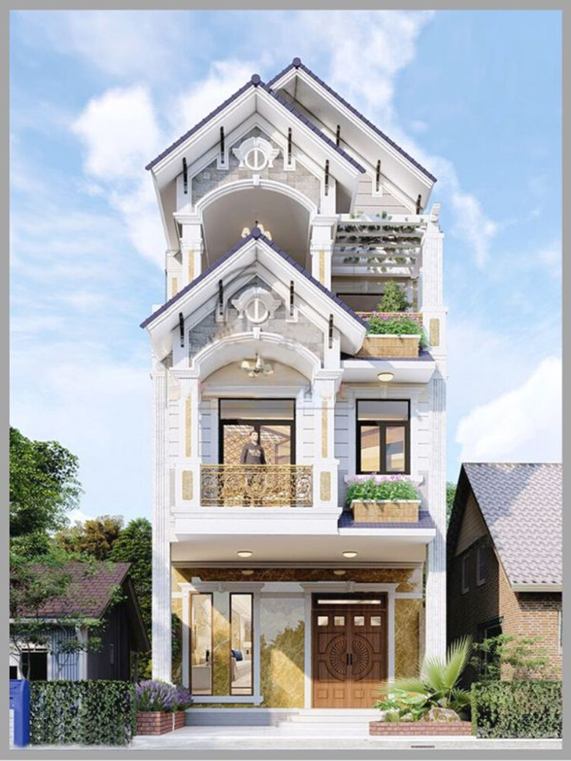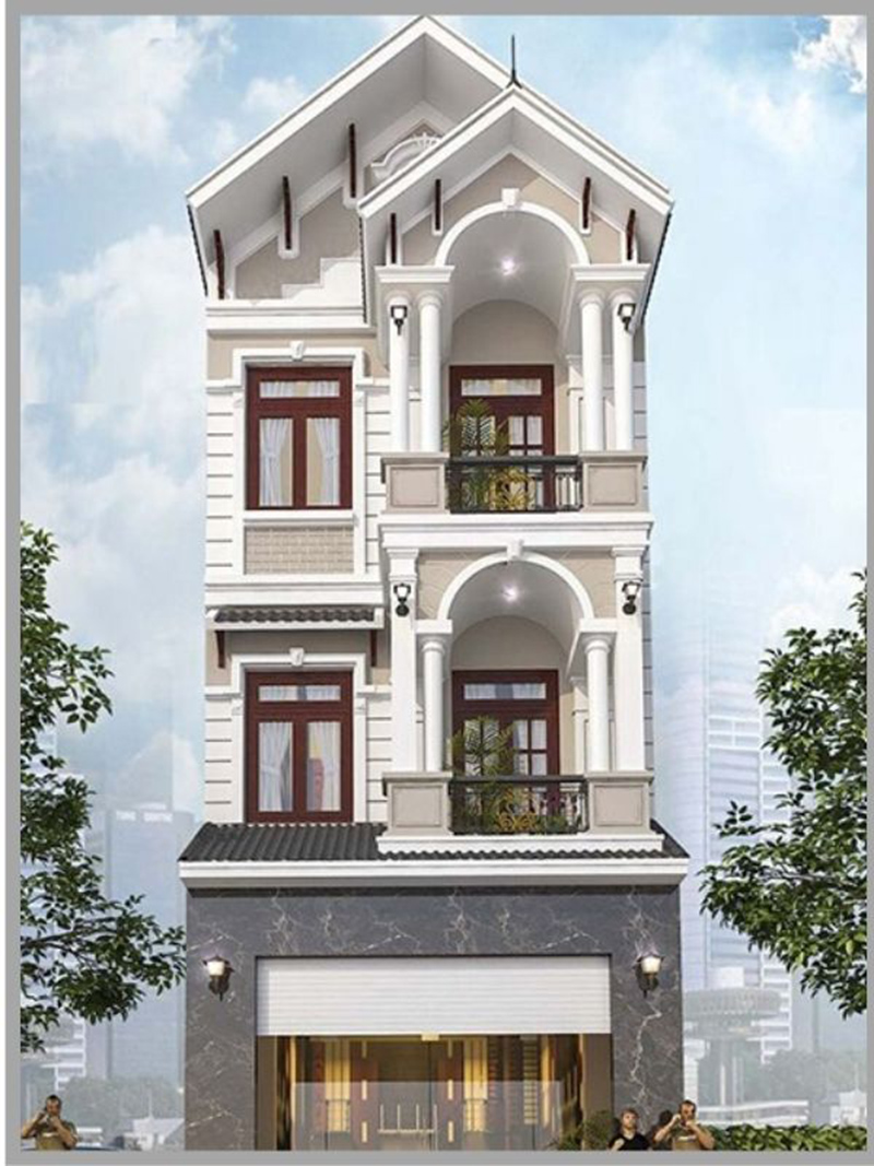 Phong cách tân cổ điển là sự kết hợp giao thoa của hai phong cách kiến trúc hiện đại và cổ điển, là sự tiết chế trong kết cấu và sắc của hiện đại và sự phá cách của phong cách hiện đại. Ở mặt tiền nhà phố 3 tầng mái thái, có thế vẫn xuất hiện những chi tiết hình vòm hay họa tiết hoa văn được tối giản nhưng song song với đó là sự kết hợp của vật liệu hiện đại và màu sắc có sự phá cách hơn, mang đến thiết kế vừa hiện đại vừa cổ điển cho mặt tiền nhà phố 3 tầng mái thái.
