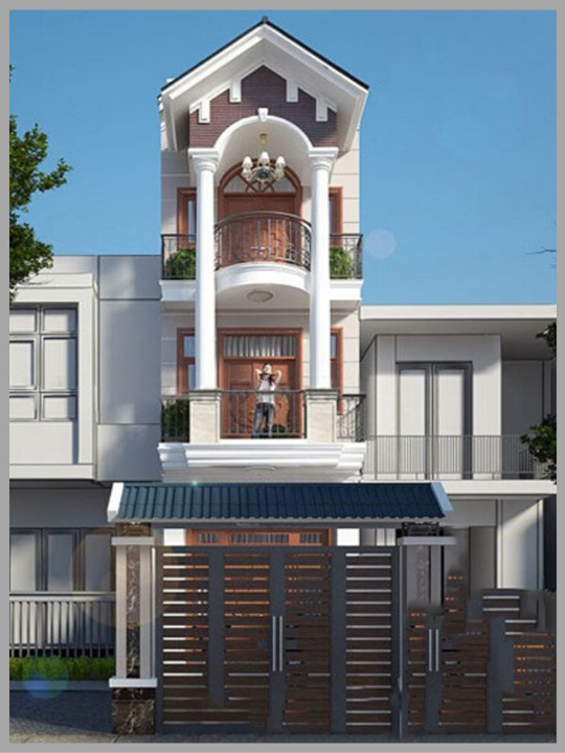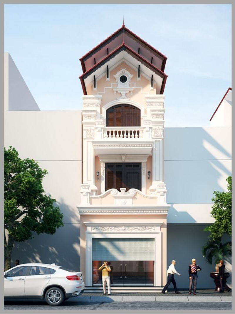 Mặt tiền nhà phố 3 tầng mái thái cổ điển đẹp