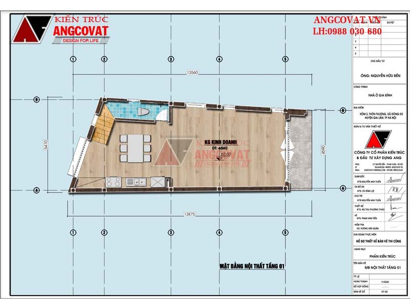 Trên đây là hồ sơ thiết kế nhà 65m2 3 tầng đẹp hiện đại của gia đình chú Bền do kiến trúc sư Angcovat thực hiện. Ngôi nhà được triển khai trên diện tích 70m2 vừa để ở kết hợp kinh doanh.