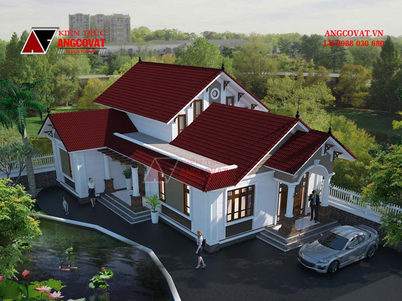 Bên cạnh rất nhiều những mẫu nhà mang đậm nét cổ điển hoặc hiện đại tráng lệ trên thị trường ngày nay, chúng ta cũng không thể quên đi vẻ đẹp của những ngôi nhà lấy sự đơn giản mộc mạc làm gốc. Chính vì lẽ đó mà kiến trúc sư của Angcovat muốn giới thiệu đến bạn mẫu thiết kế nhà mái thái 3 phòng ngủ 1 phòng thờ này. Bản thiết kế là sự kết hợp khéo léo giữa mái ngói truyền thống và nét vuông vắn năng động mang hơi hướng hiện đại. Mẫu nhà 3 phòng ngủ 1 phòng thờ đẹp bởi sự kết hợp tinh tế ấy mà nó còn đẹp bởi sự giản dị nhưng lại vô cùng khác biệt và vẫn giữ được sự tiện nghi cho gia đình bạn.