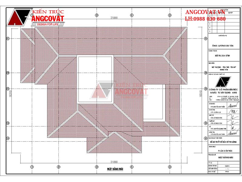 Mặt bằng mái thái của thiết kế biệt thự 2 tầng 5 phòng ngủ hiện đại