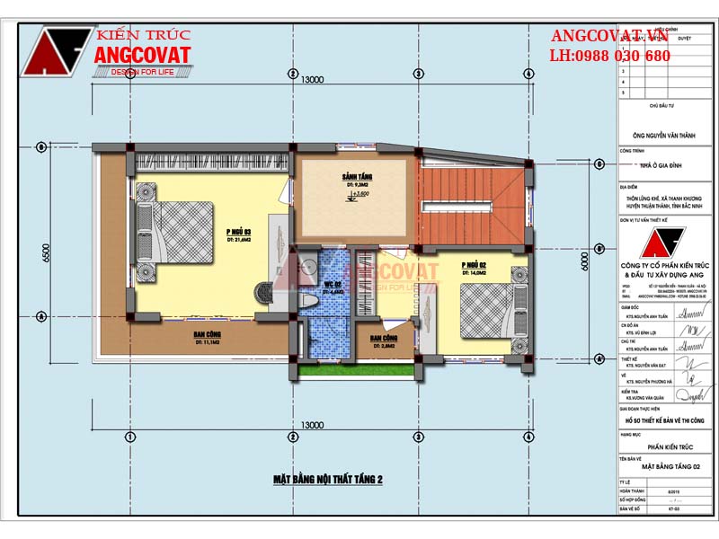 + Tầng 2: Sảnh tầng 9.3m2, wc2: 4.6m2, Ban công: 11.1m2, Ban công 2.8m2, Phòng ngủ 2: 14m2, Phòng ngủ 3: 21.6m2.