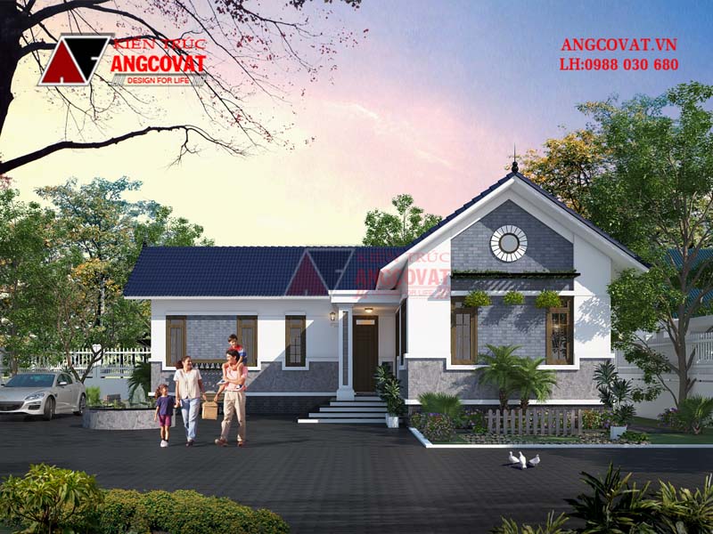 Hình ảnh bản vẽ thiết kế biệt thự đẹp 1 tầng 90m2 ở quê