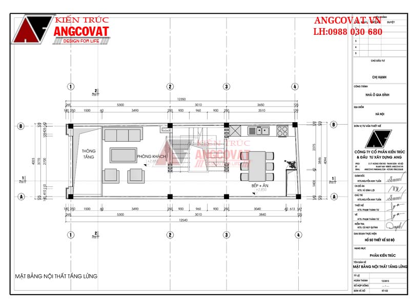 Mặt bằng tầng lửng mẫu nhà 4x12m 4 tầng gồm có phòng khách, bếp ăn. Đây là không gian sinh hoạt quan trọng, tiếp đón các vị khách quý và còn là nơi "giữ lửa" cho tổ ấm của gia đình mình. Cần nhất ở đây là sự gọn gàng ngăn nắp, không cần rộng quá nhưng đòi hỏi phải thiết kế khoa học, thông minh.