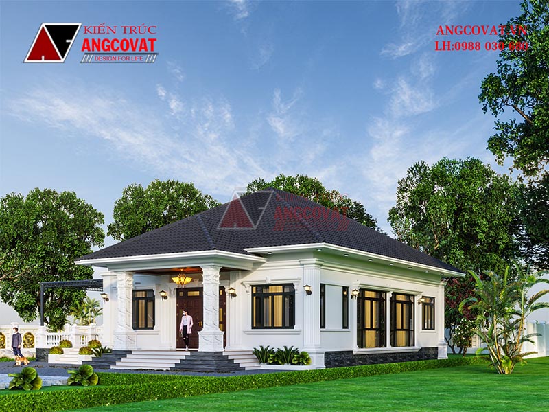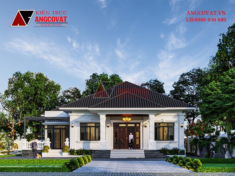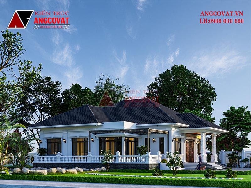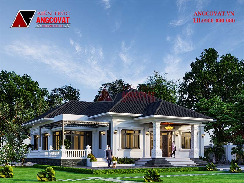 Cùng chúng tôi tìm hiểu kiến trúc biệt thự vườn 1 tầng tân cổ điển Châu Âu diện tích lên tới 250m2 vô cùng ấn tượng này nhé