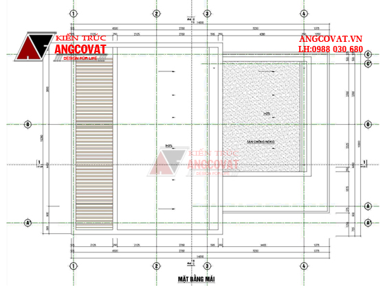 Mặt bằng mái mẫu biệt thự 3 tầng hiện đại mái bằng 4 phòng ngủ