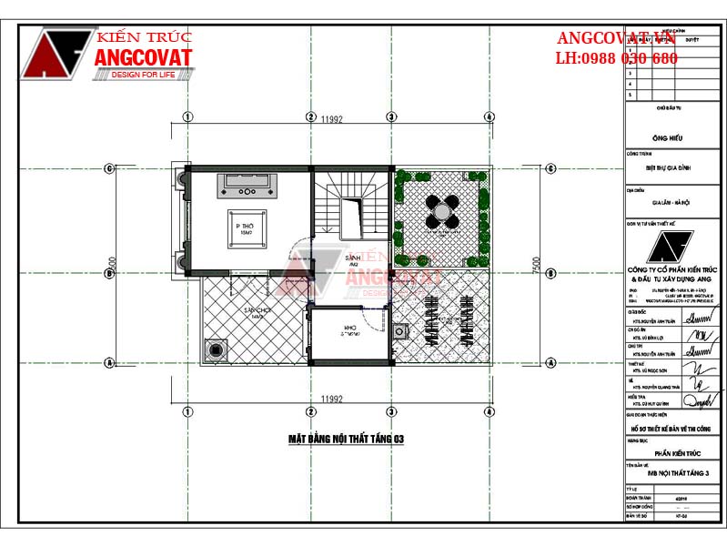 - Tầng 3: 1 phòng thờ, 1 sân chơi, 1 sảnh, 1 kho, 1 sân chơi, 1 sân phơi.