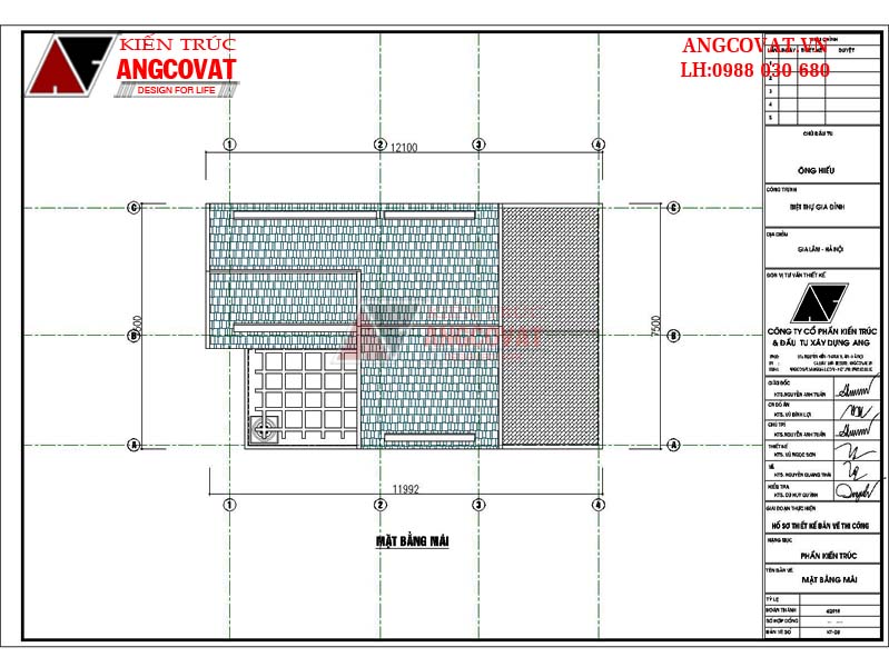 Mặt bằng mái thiết kế biệt thự phố 3 tầng 4 phòng ngủ kinh phí 1,5 tỷ đồng