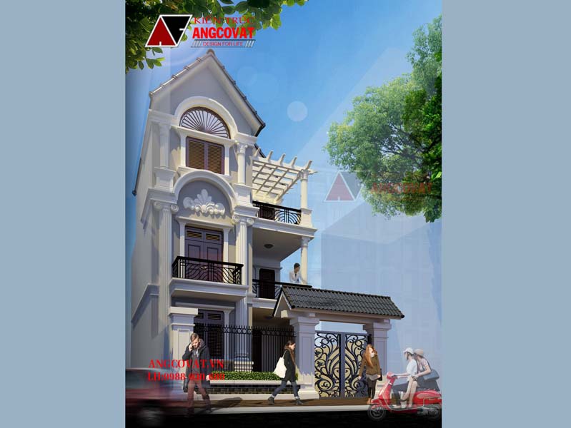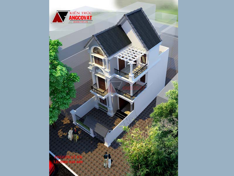 Phối cảnh view 2: Thiết kế biệt thự phố 3 tầng diện tích 80m2 mái thái