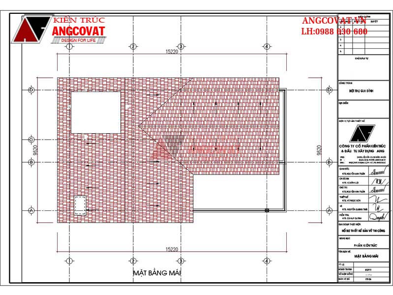 Mặt bằng mái : Bản vẽ mặt bằng mái thiết kế nhà 2 tầng 100m2 với kiến trúc mái thái đẹp mắt