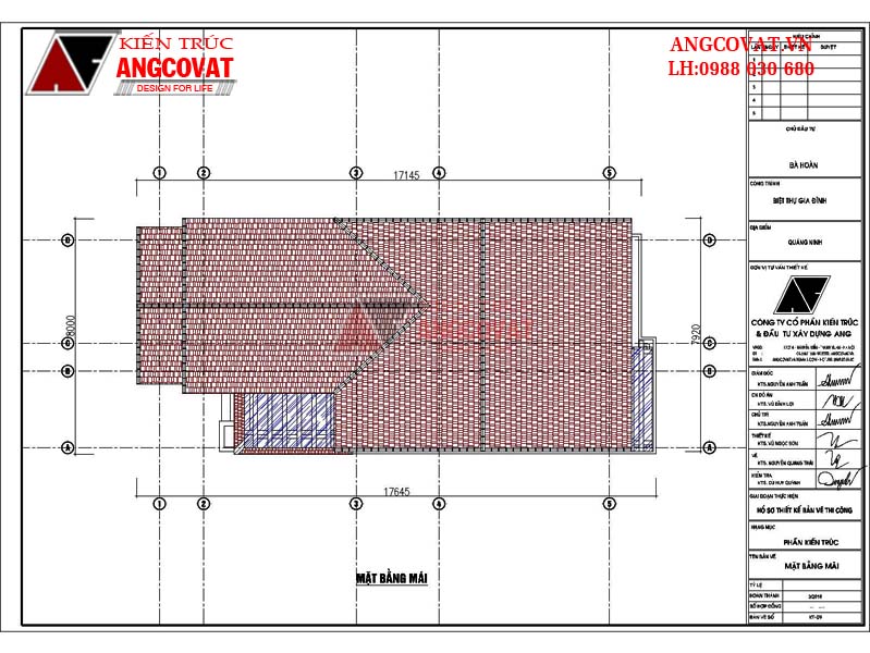 Mặt bằng mái nhà biệt thự 2 tầng 3 phòng ngủ mái thái diện tích 100m2