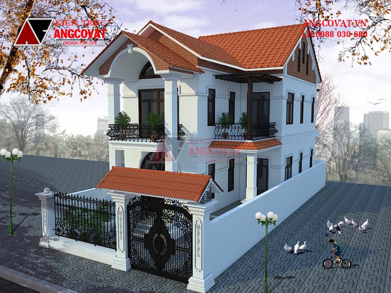 Chiêm ngưỡng phối cảnh nhà biệt thự 2 tầng 3 phòng ngủ mái thái, khách hàng sẽ thực sự bị ấn tượng bởi vẻ ngoài cân đối, tươi sáng của nó. Ngôi biệt thự chiếm lĩnh không gian với hình khối vuông vức, vững chãi. Kiến trúc sư tập trung tạo ra các mặt phẳng và các góc vuông, tăng diện tích tiếp xúc không gian, tiết kiệm diện tích tối đa. Thiết kế mái vòm ở mặt trước tạo điểm nhấn mềm mại hơn cho các khối kiến trúc.