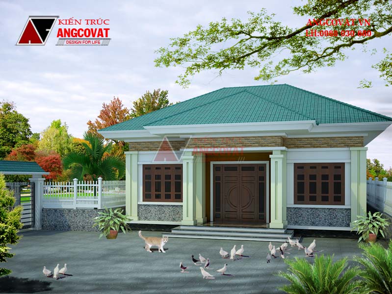 Mỗi công trình, dưới bàn tay tài hoa của các kiến trúc sư ANG đều mang một nét cá tính, một ngôn ngữ riêng. Các ngôi nhà có thể cùng chung phong cách kiến trúc nhưng không giống nhau hoàn toàn. Mẫu nhà 1 tầng diện tích 100m2 3 phòng ngủ hình vuông cũng vậy!