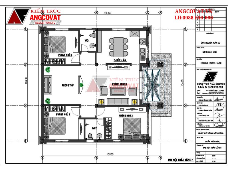 Với ý định xây dựng một ngôi nhà cấp 4 nhỏ xinh hình vuông diện tích sử dụng khoảng 120m2, 3 phòng ngủ, 1 phòng thờ, 1 phòng khách, gia đình ông Dư đã tìm đến kiến trúc ANG. Đây là lần đầu tiên chúng tôi hợp tác với nhau nhưng mọi thứ đều diễn ra suôn sẻ, nhanh chóng. Trong mail cảm ơn, ông Dư cho biết ông tìm hiểu và biết đến ANG thông qua internet sau đó cảm thấy yêu thích rồi ngay lập tức tin tưởng giao phần thiết kế cho chúng tôi. Và đương nhiên kết quả của sự tin tưởng ấy là ngôi nhà cấp 4 diện tích 100m2 hình vuông 3 phòng ngủ BT223046.