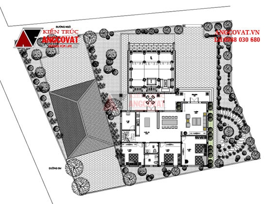 Mặt bằng tổng thể mẫu nhà ở kết hợp nhà thờ 3 phòng ngủ diện tích 160m2 mặt tiền 15m