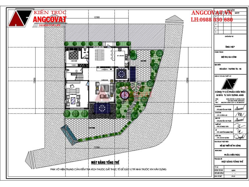 Với phương trâm " Mỗi ngôi nhà là một đứa con tinh thần", kiến trúc sư Angcovat chúng tôi đã không ngừng "sinh ra" rất rất nhiều những " đứa con" và chúng có mặt trên mọi miền đất nước. Những " đứa con" ấy được các "ông bố", "bà mẹ" trẻ của Angcovat dùng cả tâm huyết, trí tuệ, sự nỗ lực, và cả tài hoa để "sinh ra" với chất lượng tốt nhất, hoàn hảo nhất, và khiến mọi khách hàng hài lòng với "đứa con" ấy. Chúng tôi xin trân trọng giới thiệu một mẫu nhà được thiết kế chưa lâu, đó là ngôi nhà của ông Hiệp ở Thường Tín - Hà Nội, khi ông đề đạt với chúng tôi muốn xây nhà 2 5 phòng ngủ diện tích 140m2. Mỗi ngôi nhà đều mang dấu ấn của gia chủ, của người thiết kế, vì thế mỗi sản phẩm đều có vẻ đẹp riêng, kiến trúc khác nhau và một phong cách cũng khác nhau, chúng tôi luôn sẵn sàng đồng hành cùng các bạn ghi lại một dấu ấn riêng biệt như thế.