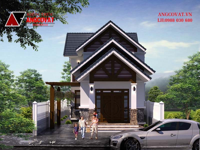Phối cảnh 01 mẫu nhà 2 tầng mặt tiền 7m mái thái ở nông thôn